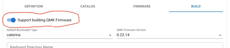 承認されているキーボードの管理画面を表示すると、「BUILD」タブが表示されているのがわかるかと思います。