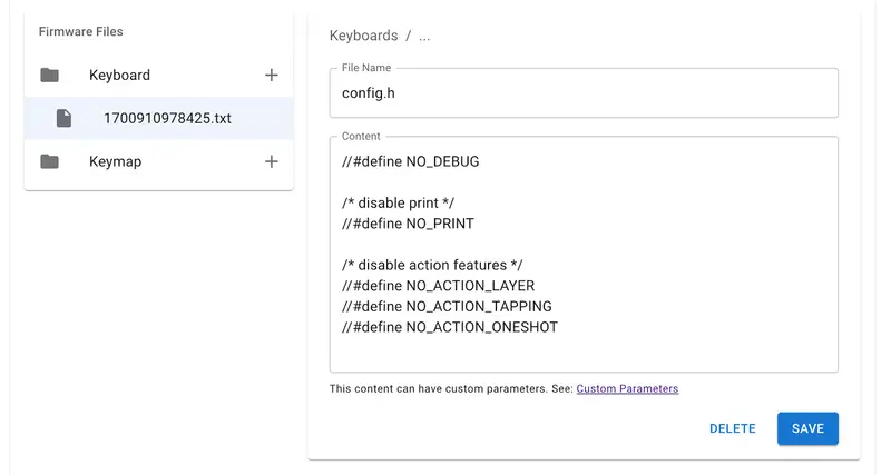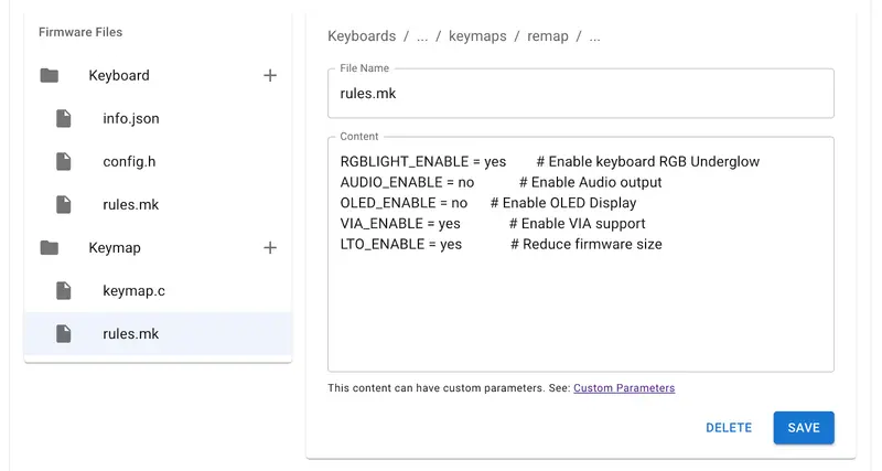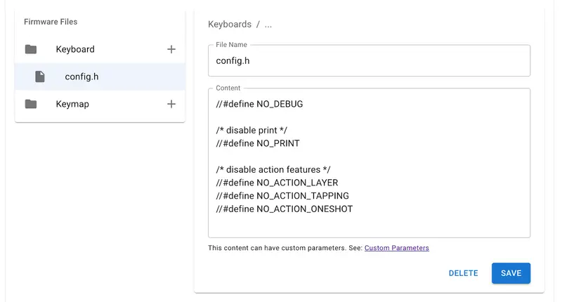 ユーザーがファームウェアをビルドする際にカスタマイズができるようにするために、キーボード登録者は「カスタマイズポイント」を各ファイルに埋め込むことができます。